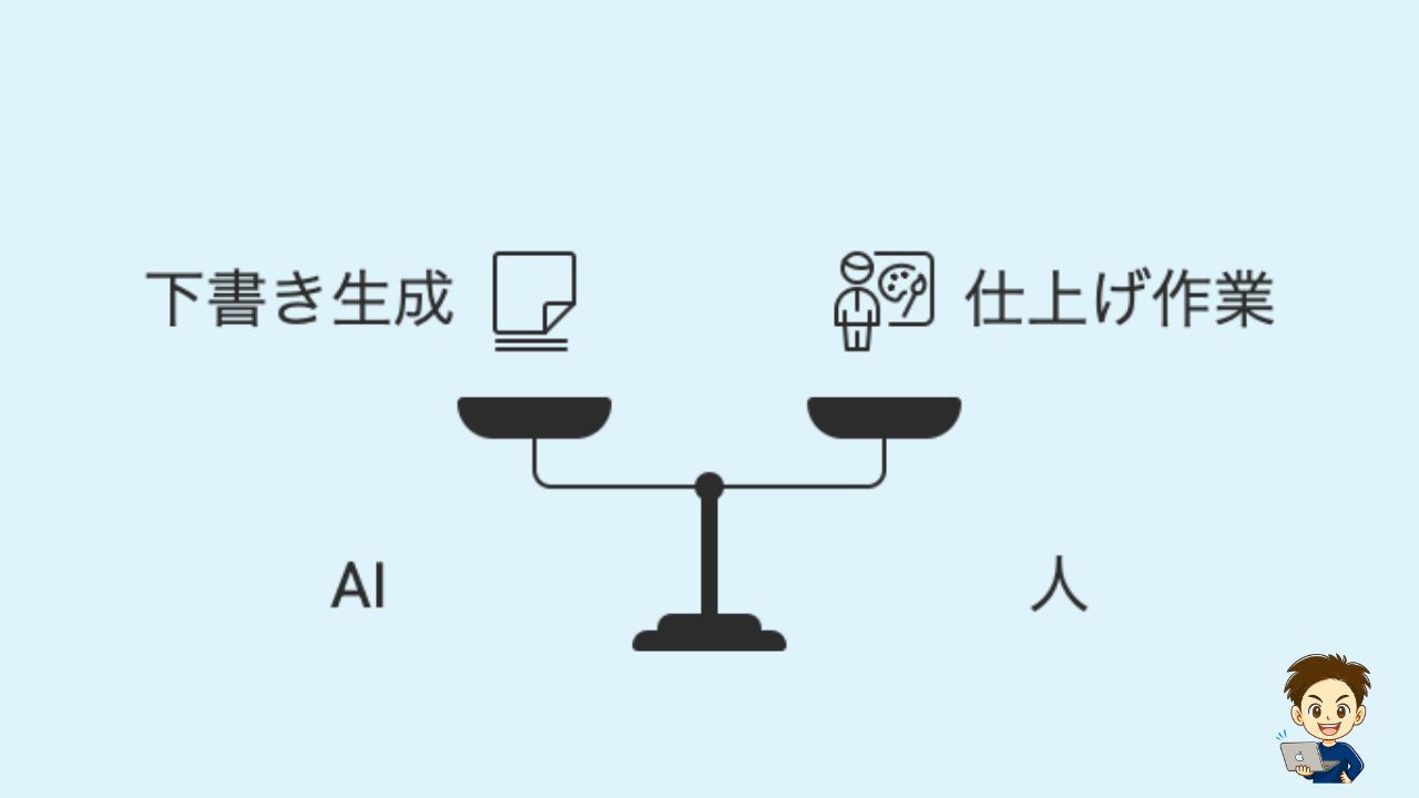 AIの役割(80%): ネタ出し、構成作成、下書き執筆、誤字脱字チェック